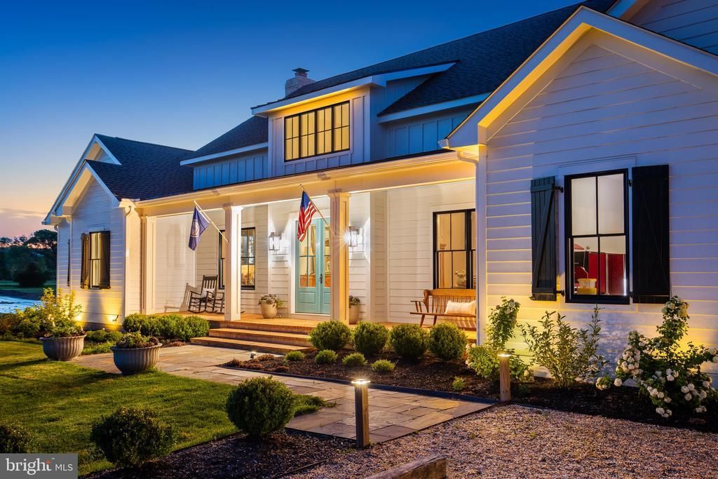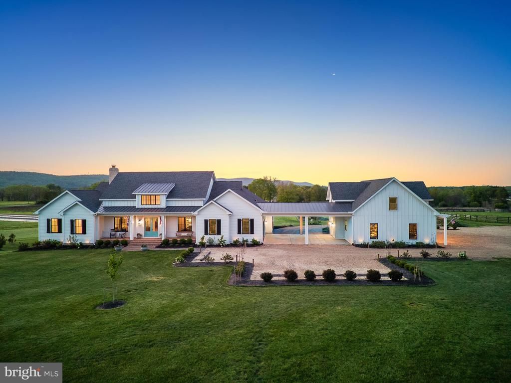 Blue Sky Farm was completed in 2023 as the personal residence of an established custom builder, and every specification reflects that singular standard. The residence is sited to harness the full drama of its natural setting — every principal room frames a living tableau of the pond, the long light of evening, and the silhouette of the Blue Ridge Mountains beyond. All four bedrooms occupy the main floor, arranged for both quiet separation and effortless daily flow. The lower level adds approx. 1,034 finished sq. ft. with a full bathroom, plus approx. 2,420 sq. ft. unfinished and ready for a future media room, gym, guest suite, or additional bedrooms. Total finished area is approx. 4,701 sq. ft.; total under roof, including outbuildings, is approx. 14,875 sq. ft. The grounds extend across approx. 15.33 acres on two parcels, encompassing a pond, commercial-scale perennial gardens, and the restored Blue Sky Barn with bathroom, kitchen, finished lower level and upper entertainment level with stage and bar. Five minutes to Purcellville's restaurants, boutiques, and farmers market. Western Loudoun County is one of Virginia's premier agritourism destinations — surrounded by award-winning wineries, working farms, equestrian estates, and the cultural draw of Middleburg and Leesburg. A coveted address that feels worlds away from everything, yet isn't. CONSTRUCTION HIGHLIGHTS 2×6 framing · continuous thermal break envelope · open-cell spray foam throughout · Andersen clad wood windows and 8' doors · GAF Ultra HD shingles and standing seam steel · James Hardie siding · brick watercourse · Loudoun County fieldstone fireplace · reclaimed barn beam mantle · random-width red oak hardwood floors · Showplace custom cabinetry · Cambria quartz countertops · JennAir appliances · three-zone Lennox heat pumps with ERV air exchangers · dual Rinnai tankless water heaters · 400-amp service · Generac generator-ready · Deako smart lighting