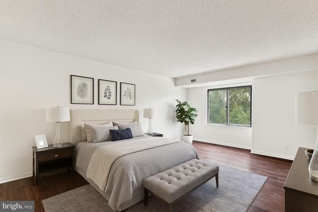 Welcome to Unit 519 at Lakeside Plaza — a beautifully renovated and accessible 3‑bedroom, 2.5‑bath condominium offering bright, open living and peaceful park‑side views. Updated in August - November 2025, this turn‑key home features fresh paint, luxury vinyl plank flooring, and picture‑view windows in every bedroom that fill the space with natural light. The upgraded kitchen shines with new cabinetry, granite countertops, stainless steel appliances, and abundant storage — perfect for everyday cooking or hosting. The bathrooms have been thoughtfully refreshed with new vanities featuring quartz countertops, waterproof tile, and modern lighting for a clean, contemporary feel. A spacious private balcony extends your living space outdoors, ideal for morning coffee or evening relaxation overlooking the park. The flexible layout includes two full bedrooms plus an additional room that can serve as a home office or third bedroom. Designed with handicap accessibility, the unit also includes assigned covered parking and extra storage space, additional conveniences include on-site daycare, and a salon adding convenience and value. Offering effortless connectivity to Washington, DC and the entire region, this location places you just 7.5 miles from Reagan National Airport, 25 miles from Dulles International, and 41.5 miles from BWI. Amtrak service is also close by, with stations in Alexandria (6 miles) and Washington, DC’s Union Station (11 miles), making regional and long‑distance travel exceptionally convenient. Move‑in ready and beautifully updated, Unit 519 offers comfort, accessibility, and a serene setting just steps from green space. Please note: photos are virtually staged.